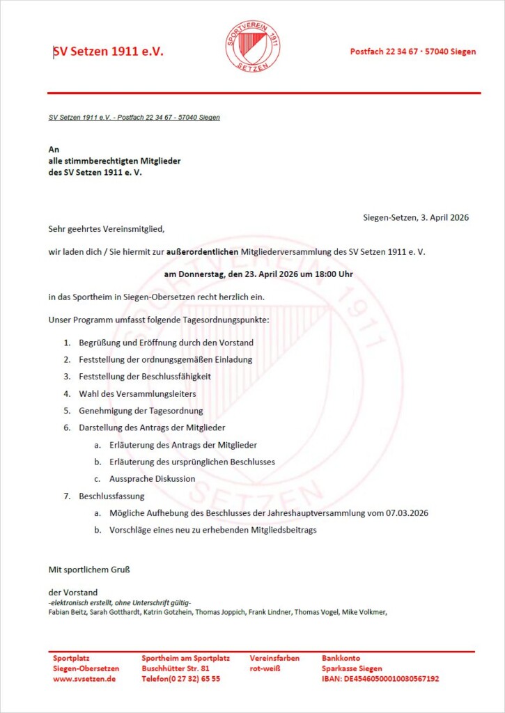 Ausserordentliche Mitgliederversammlung am 23.04.2026